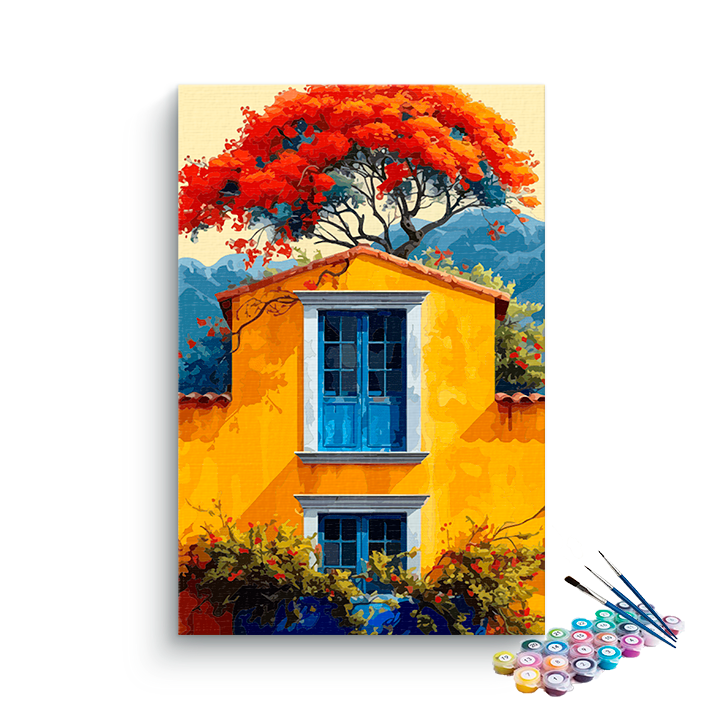 Sunset Hillside Retreat: Vibrant Landscape Paint by Numbers Kit