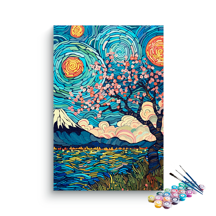 Starry Sakura: Van Gogh-Inspired Cherry Blossom Paint by Numbers Kit