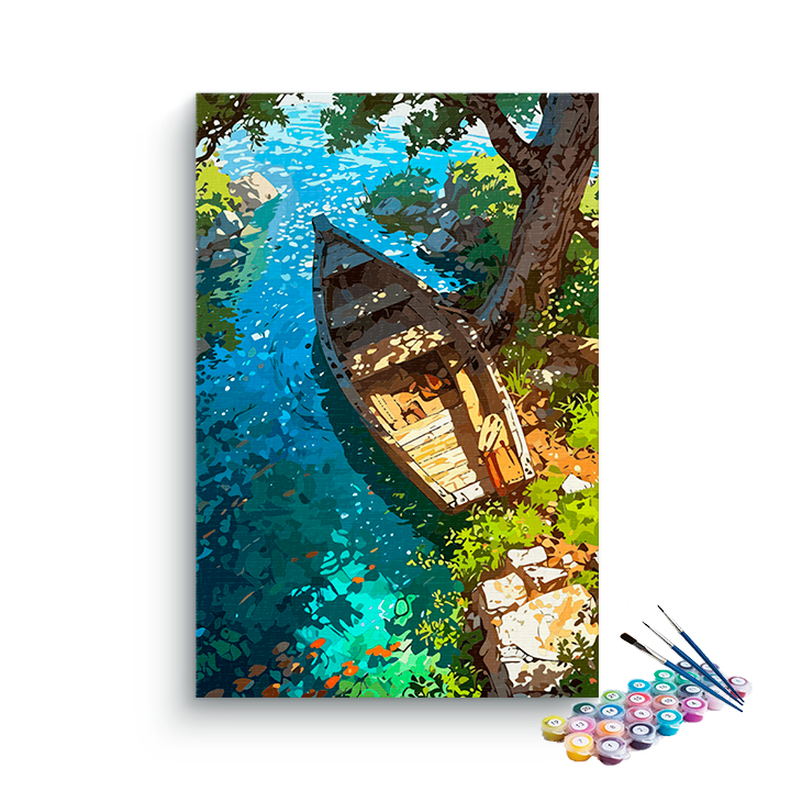 Tranquil Riverside Rowboat Paint by Numbers Kit