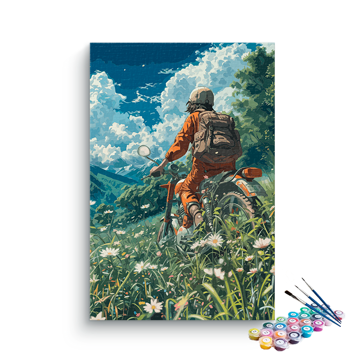 Mountain Meadow Motorcycle Adventure Paint by Numbers Kit