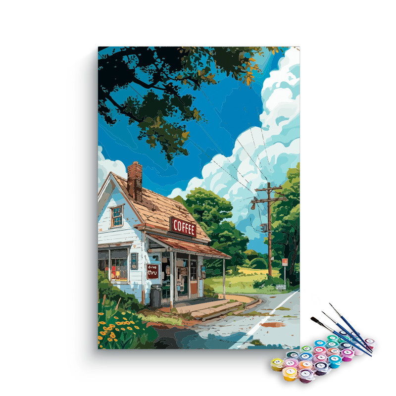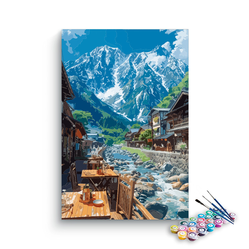 Sunset in Mediterranean Village Landscape Paint by Numbers Kit