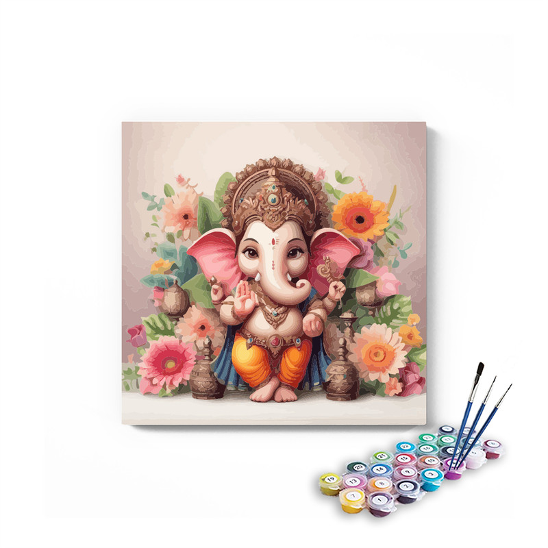 Divine Beginnings: Lord Ganesha with Floral Garland – Paint by Numbers Kit