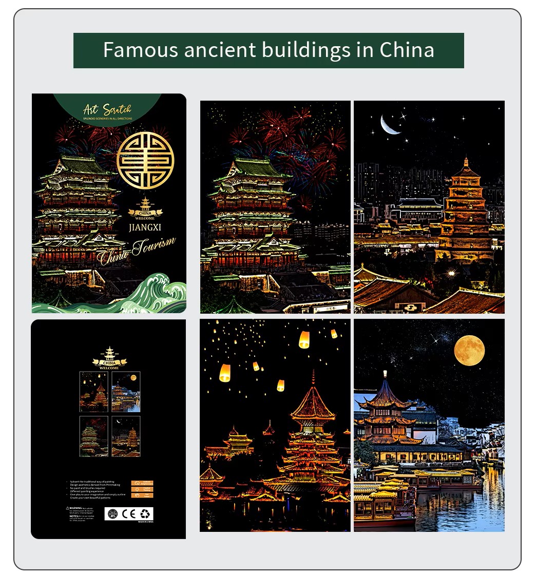 Ancient China Scratch Painting Kit – Jiangxi Temples, Lantern Festival & Night River Views Ancient China Scratch Painting Kit – Jiangxi Temples, Lantern Festival & Night River Views