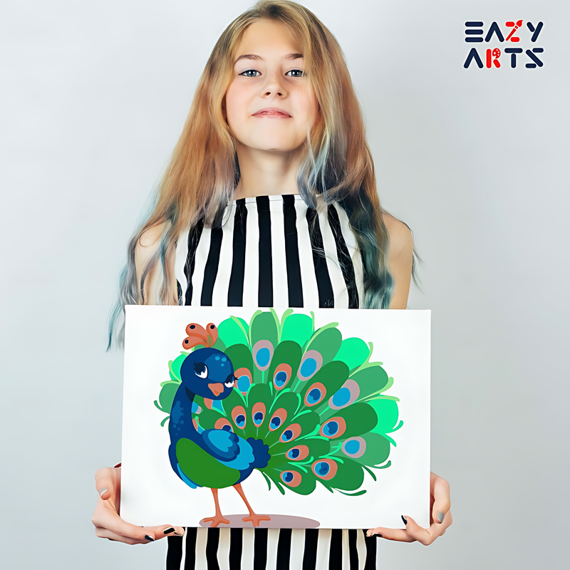 Eazy Arts is a brand that offers paint by numbers for kids. It has designed an Baby Peacock art kit which comprises of a canvas, color letters and a step-by-step instruction manual. The kit enables the kids to paint by numbers while improving their art skills and learning new things at the same time.