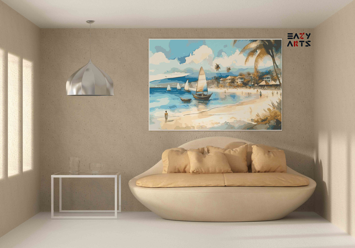 Immerse yourself in the serene beauty of coastal living with our Captivating Coastal Escape Paint by Number Kit. Featuring a stunning beach landscape adorned with vibrant sailboats, lush palm trees, and gentle waves, this artwork captures the essence of relaxation and adventure. It’s perfect for beginners looking to explore their artistic side while enjoying a creative and therapeutic experience.