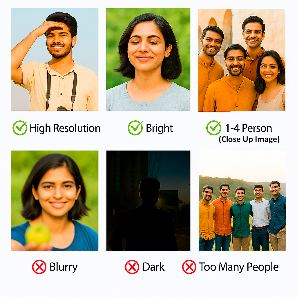 ❌ Avoid Low-Quality, shadowy, backlit, or dark photos.