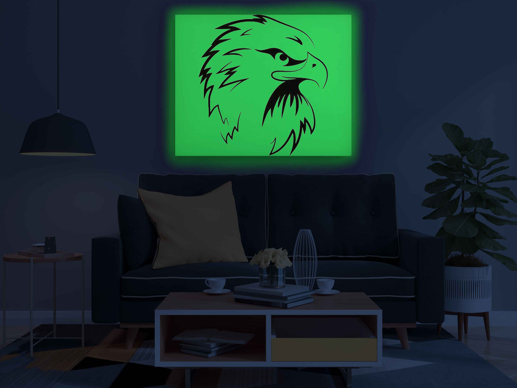 Just paint the dark areas using the provided black paint and the white areas with your choice of glow-in-the-dark paint (Blue, Cyan, or Green). The result? A majestic eagle by day, a glowing symbol of power by night.