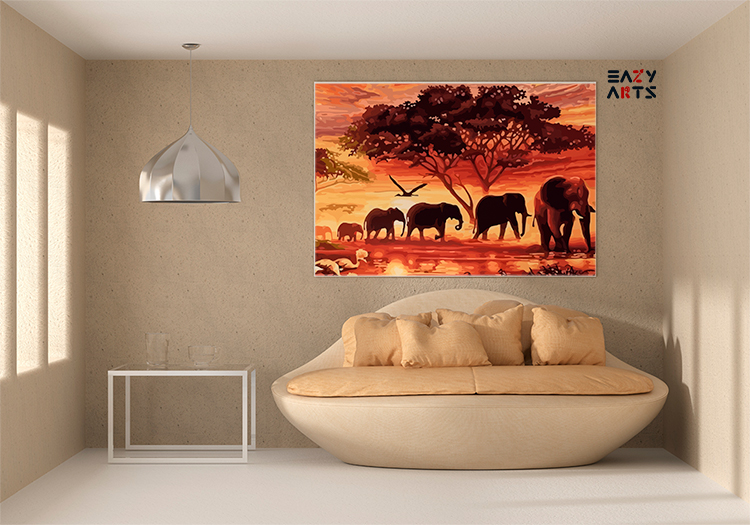 Elephant Safari Sunset Paint by Numbers Kit Elephant Safari Sunset Paint by Numbers Kit