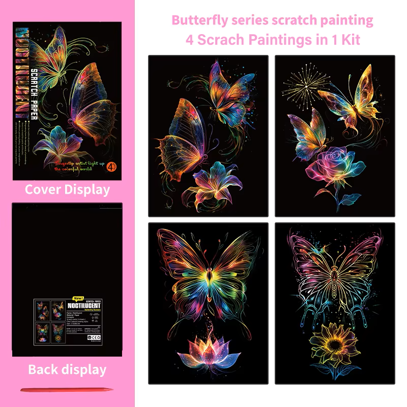 Glow in the Dark Butterfly Scratch Painting Kit – Neon Wings & Floral Magic