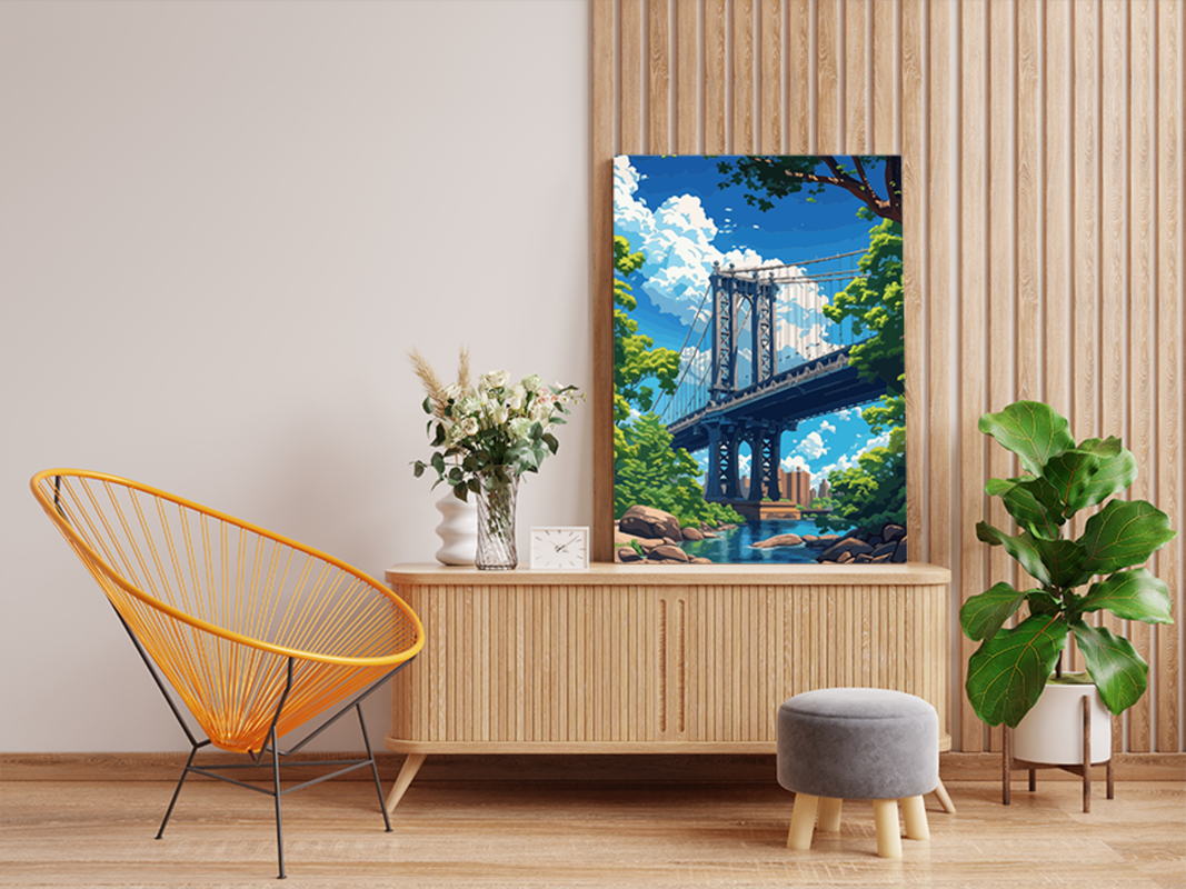 Capture the grandeur of an iconic city bridge with this paint by numbers kit. The beautiful contrast of the towering steel structure against a bright blue sky and lush green trees creates a stunning urban landscape. Whether youβre a beginner or an experienced artist, this kit offers a calming and rewarding painting experience. Bring the beauty of cityscapes into your home with this detailed and captivating artwork that celebrates the harmony between nature and urban architecture.