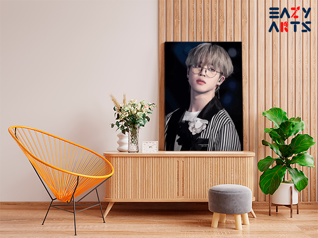 Celebrate the soft, magnetic presence of BTS’s Jimin with this stunning Paint by Numbers Kit. Featuring Jimin in a refined, stage-perfect look with delicate glasses and floral detail, this kit captures his serene beauty and emotional depth that fans adore.