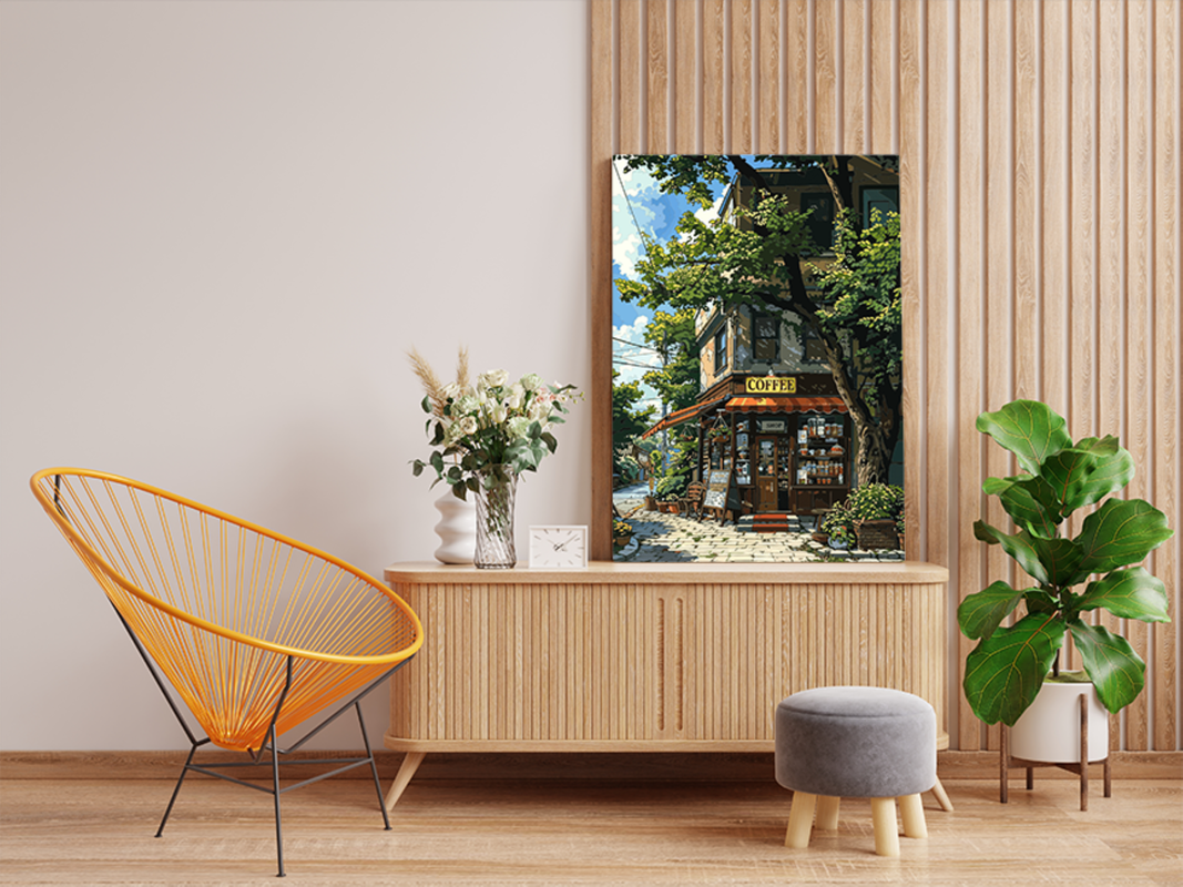 Capture the charm of a cozy neighborhood coffee shop with this delightful paint by numbers kit. Nestled on a sunny, tree-lined corner, this inviting coffee shop scene is filled with warmth and character. Ideal for both beginners and experienced artists, this kit offers a relaxing and rewarding painting experience, allowing you to bring a beautiful, nostalgic scene to life. The completed artwork will add a touch of rustic charm and coziness to any room, perfect for coffee lovers and art enthusiasts alike.