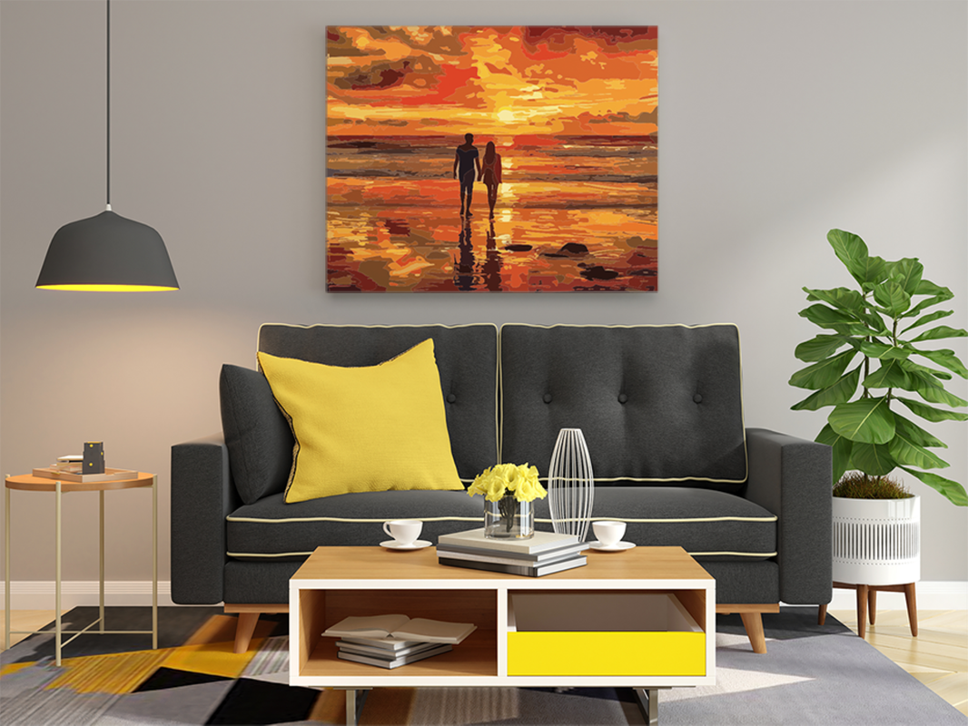 Capture the magic of a sunset stroll with the Romantic Sunset Beach Walk Paint by Numbers Kit. This beautiful scene features a couple walking hand in hand along the shore, with the fiery colors of a breathtaking sunset reflecting on the water. The deep oranges, yellows, and reds of the sky create a warm and inviting atmosphere, perfect for adding a touch of romance to any space. Whether you’re looking to unwind or explore your artistic talents, this kit provides all the materials you need to recreate this stunning sunset scene. It’s an ideal gift for couples or anyone who loves beach landscapes and romantic moments.