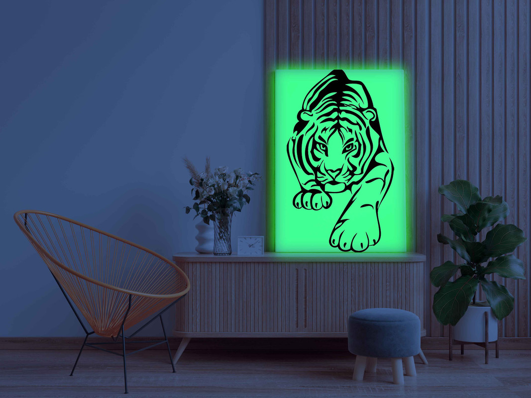 Simply paint the black areas using the provided black paint, and apply glow-in-the-dark paint (Blue, Cyan, or Green) on the white spaces. In daylight, itβs a powerful black-and-white tiger design. At night, your creation comes to life with a glowing effect that demands attention.
