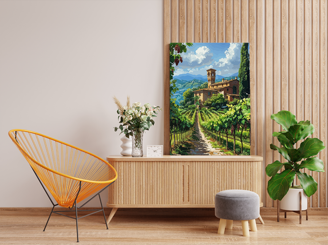 Bring the warmth of the Italian countryside into your home with the Tuscan Vineyard Villa paint by numbers kit. This captivating artwork transports you to a rustic villa nestled among rolling hills and lush vineyards, with ripe grapes hanging from the vines under a clear blue sky. Perfect for anyone who loves the charm of Tuscany, this kit provides a relaxing painting experience as you recreate the vibrant greens and warm stone textures. Whether youβre a beginner or an experienced painter, this kit offers a fun and fulfilling project that results in a beautiful piece of art for your home.