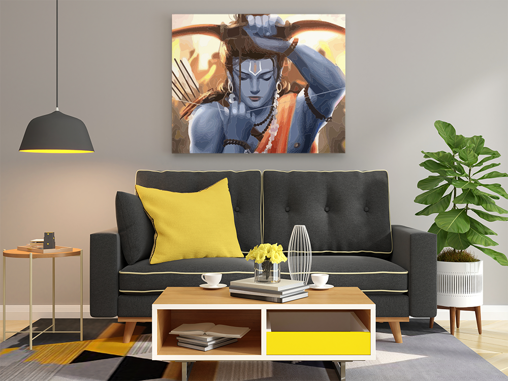 Immerse yourself in the epic tales of the Ramayana with the Warrior’s Prayer: Ram with Bow Paint by Numbers Kit. This powerful image of Lord Ram, poised with his bow, captures a moment of deep focus and spiritual strength, embodying the essence of dharma and righteous action.